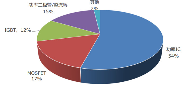 2017年全球功率半导体器件市场规模达181.5亿美元,其中大陆市场占到40%的份额,年复合增长率维持在3%以上,同时,功率IC、MOSFET、二极管/整流桥、IGBT,分别占到54%、17%、15%、12%的市场份额,除二极管中国大陆发展较好以外,MOSFET与IGBT主要还是集中在国际大厂手中,如英飞凌、安森美、瑞萨、三菱电机、富士电机等等。