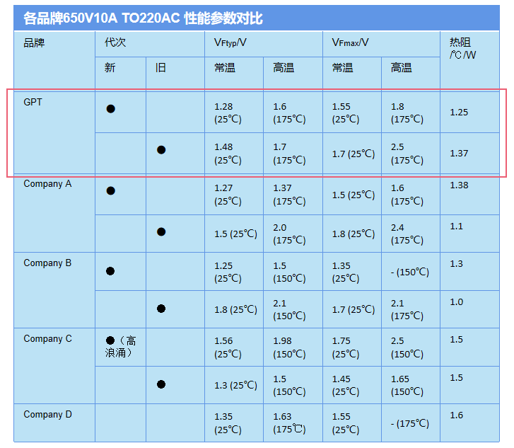 在应用到上述拓扑的各种产品中,为了改善系统损耗和功率密度,需要选择正向导通压降(VF)值尽可能低的二极管,目前该款器件的主要目标市场有: