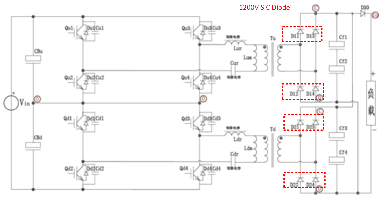 推荐使用304AM永利1200V系列SiC二极管产品的充电模块拓扑: